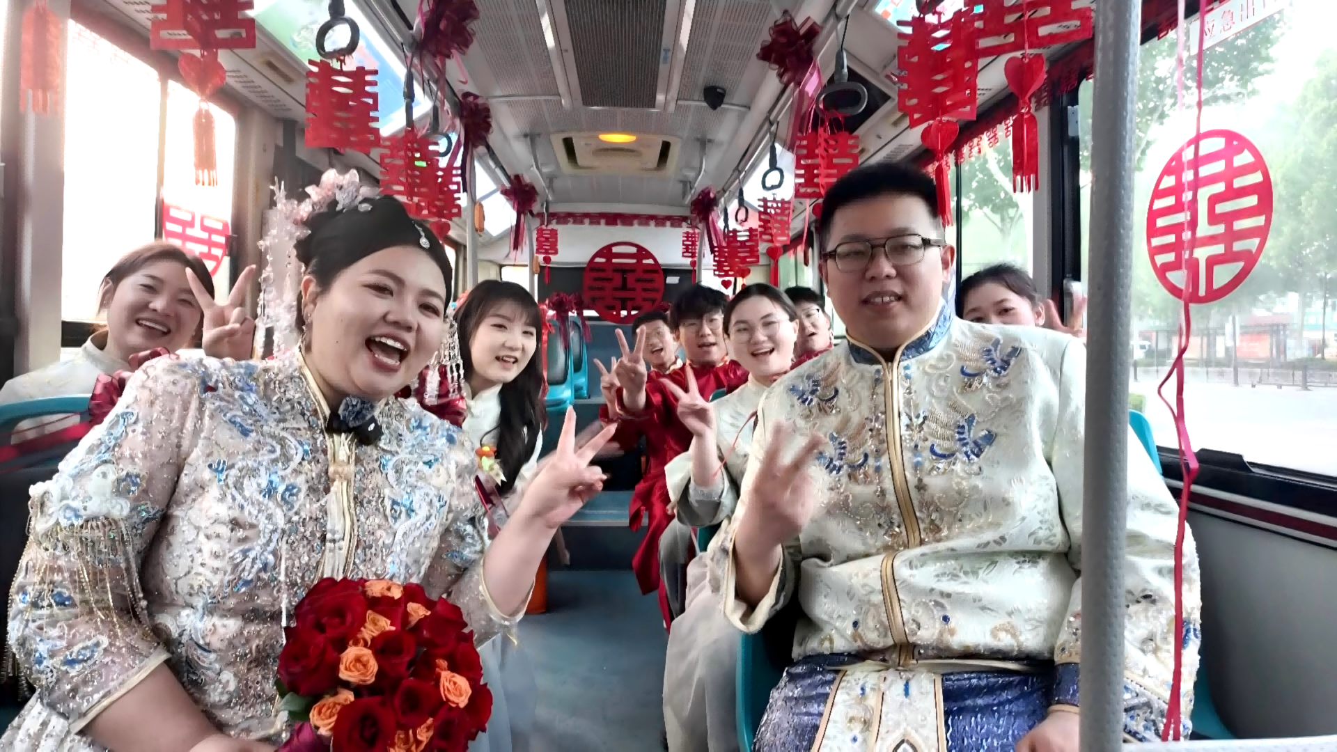 为爱“减负”,甜蜜“加码”。蓝天白云下,随着“幸福巴士”的飞驰,让整座城市都见证了新人的幸福。摒弃传统高价婚车,选择用公交车作为婚礼座驾,以实际行动践行移风易俗、婚事新办,别样的婚车为婚事注入了一股清新的年轻力量。最美好的爱情,不是昂贵的排场,而是轻车从简。
