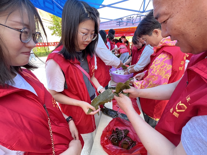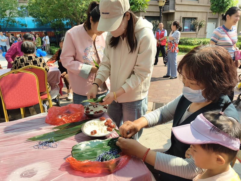 大汶河旅游发展中心金融街社区新时代文明实践站开展了“粽香四溢 端午情浓”主题邻里节活动,“拔河比赛”“跳绳比赛”“打地鼠”“端午节知识小问答”等互动游戏,让家长和孩子在协作中感受传统文化的魅力。与此同时,居民们围坐一起,大家在洗糯米、折粽叶、装糯米、放红枣、裹紧扎绳等包粽子环节中各显身手,整个现场欢声笑语,其乐融融。社区和物业工作人员带着包好的粽子走访慰问了辖区内的老年人,送去了节日的祝福。