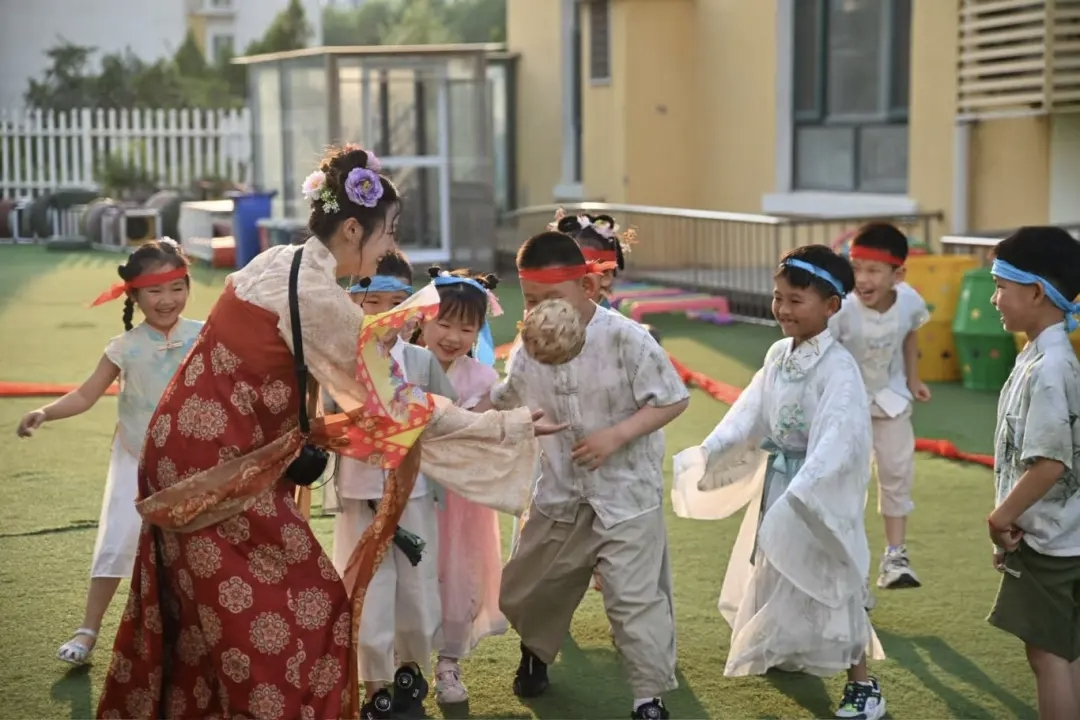 昌邑市潍水幼儿园开展“童趣六一 汉韵端午”亲子游园会活动,孩子们身着汉服,行传统礼仪,体验做香囊、画团扇、踢蹴鞠等项目,仿若穿越千年,领略古韵风华。