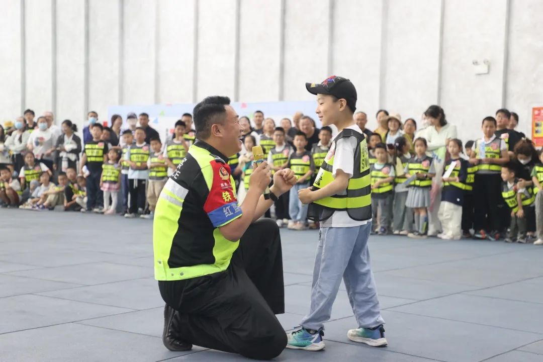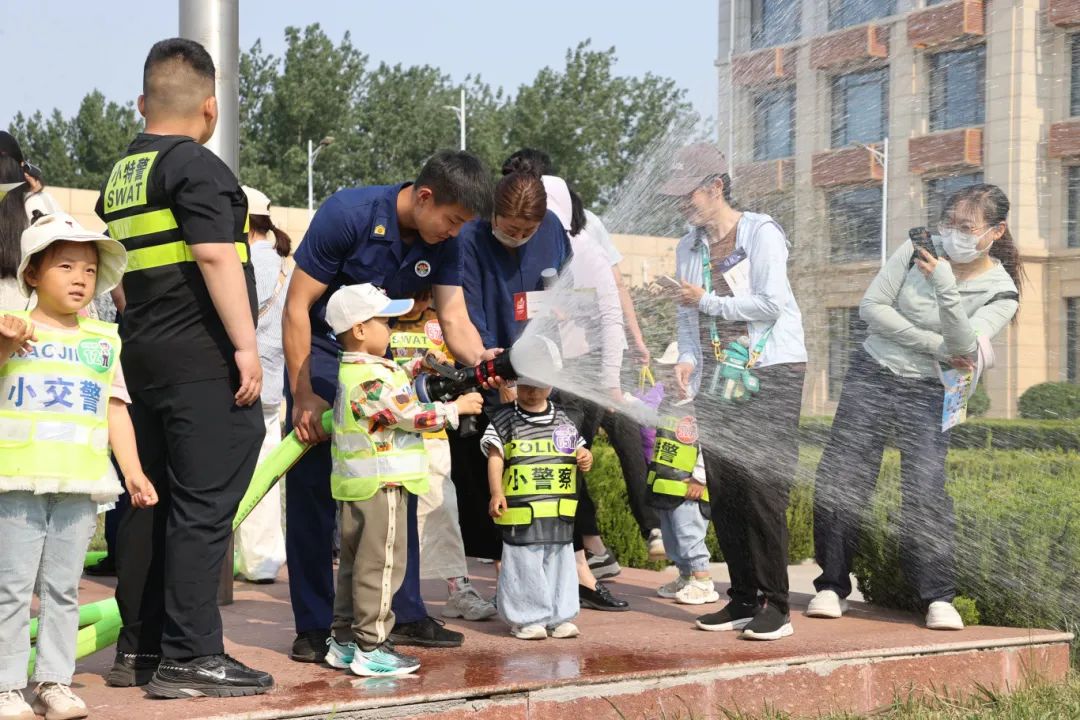 热血展示:硬核演练燃动全场。消防救援科目展示完毕后,全场人员合影留念。随后,特警队员以一场震撼的战术表演展现了守护城市安全的硬核实力。突击、擒拿,每一个动作都引发孩子们的热烈欢呼。交警叔叔的趣味互动问答,则让交通安全知识“活”了起来,孩子们的笑声和家长们的掌声交织在一起。
