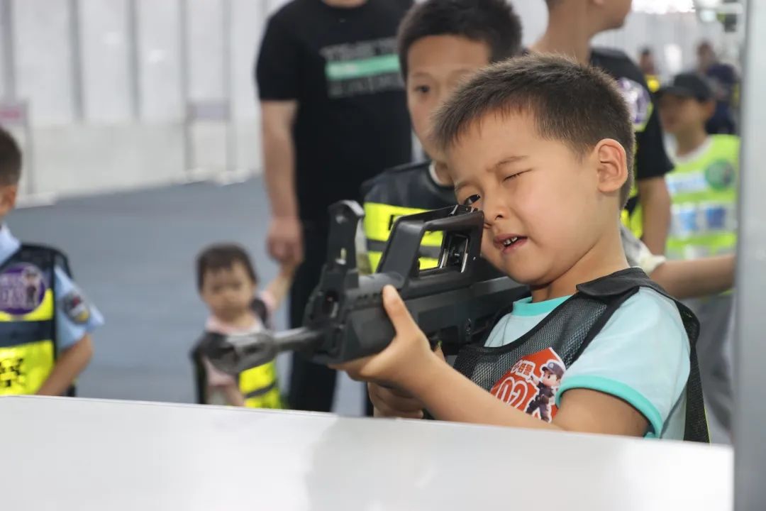装备博览:零距离触摸“硬核守护”。活动现场的装备展示区成为孩子们探索的“宝藏地”。警用摩托车、防爆装备等各式警用设备整齐陈列,民警们化身讲解员,向孩子们详细介绍装备的功能与应用场景。“这台无人机能飞到高空侦查,就像警察的‘千里眼’!”“防爆盾牌可以挡住危险,保护大家的安全。”孩子们在民警指导下纷纷参与体验,“零距离”感受警营硬核力量。